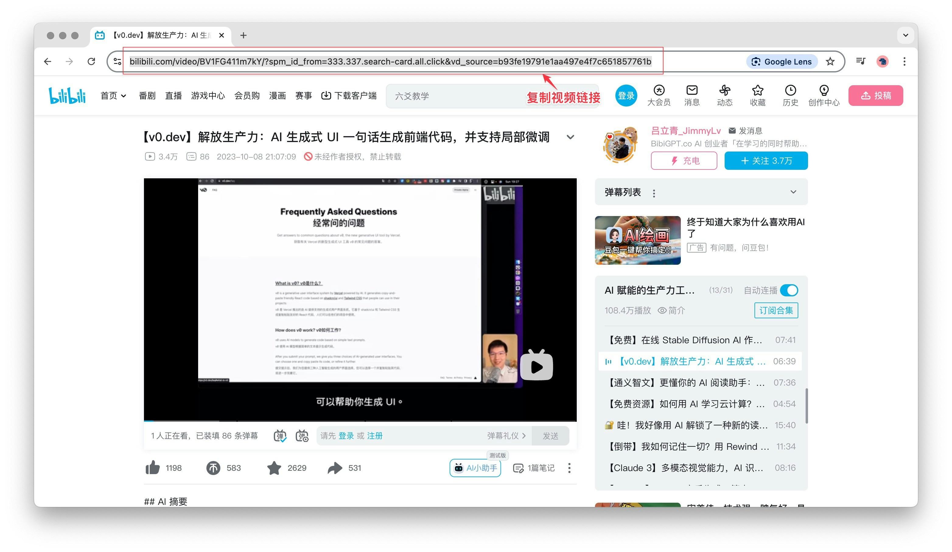 - 第2步:在BibiGPT中粘贴或自动填充链接