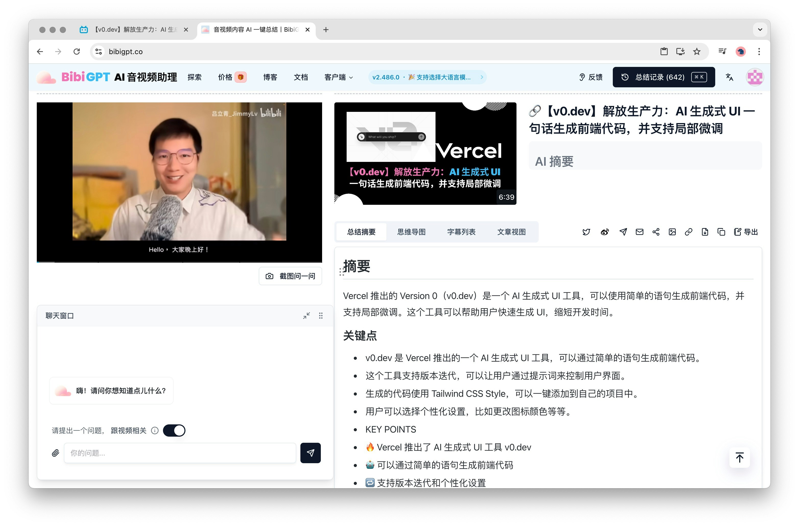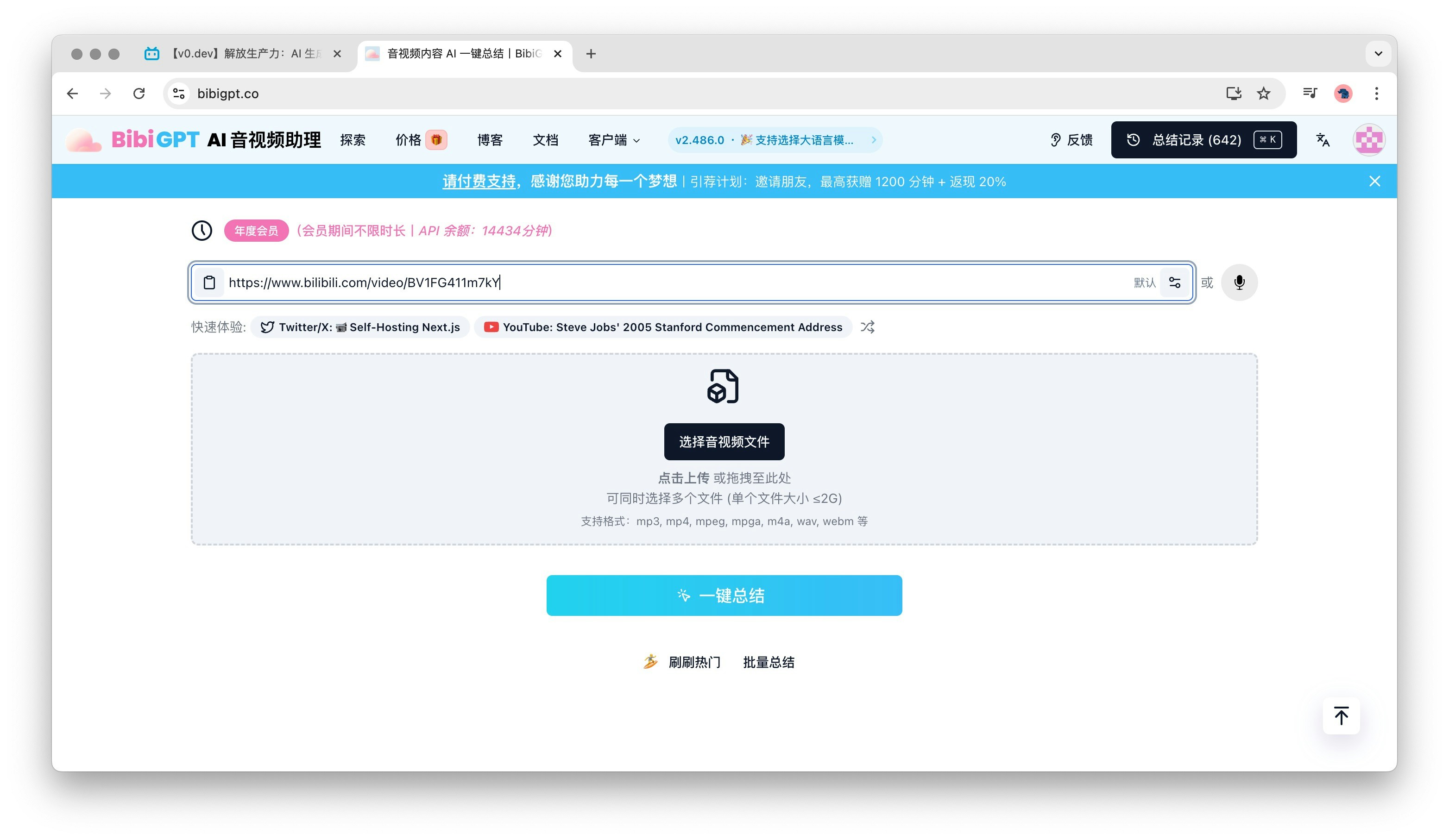 立即体验 BibiGPT